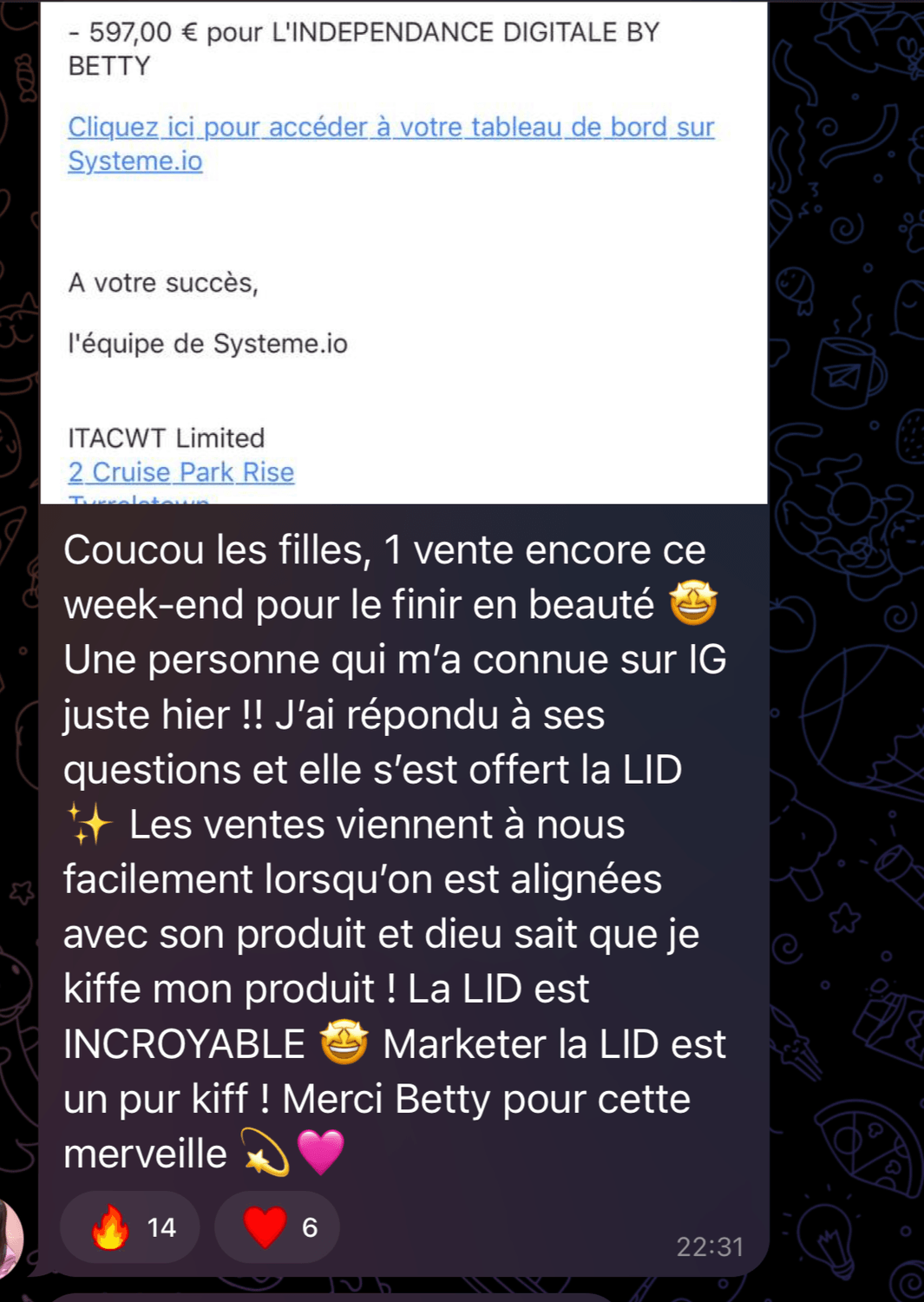 👉 Chaque module de la LID est conçu pour t’emmener d’où tu es aujourd’hui à une version de toi plus libre, plus confiante et 100% indépendante. Ce n’est pas juste une formation, c’est une étape importante dans ton parcours d'entrepreneuse.